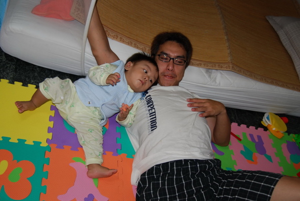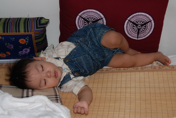 一定要三百六十度大翻滾 把爸媽擠到角落去 以奇怪的姿勢睡覺才高興