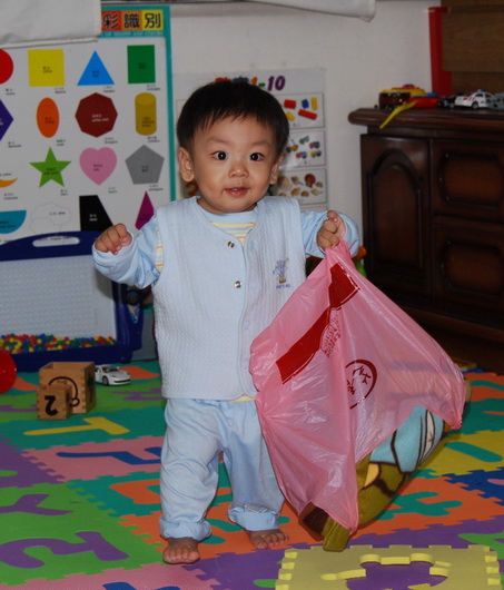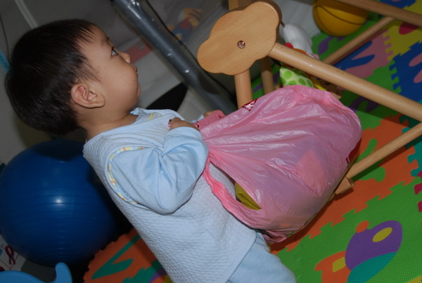 跟個小老頭一樣 拿著都快要比自己還要大包的東西走來走去