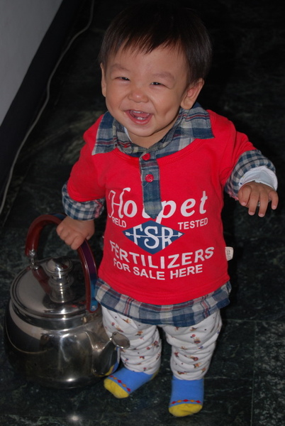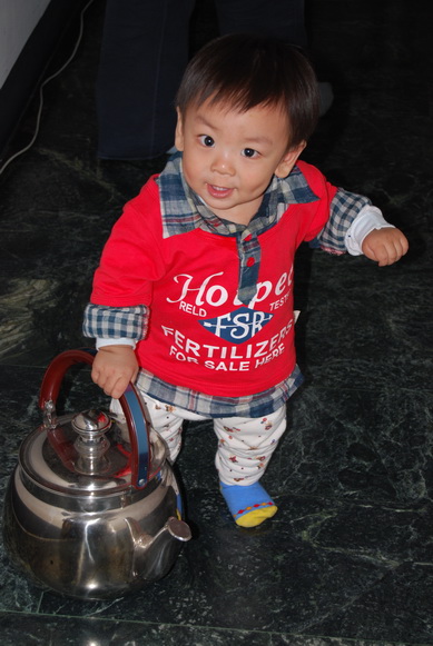 就拎著這個快要比他大的水壺走來走去