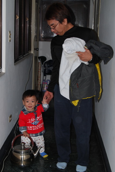 連阿爸一手牽著他 另一手也不願意把ㄉㄟˊㄍㄡˋ放下
