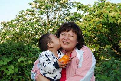 拿著師父給他的橘子跟親親阿母 對他來說還比較有趣的樣子