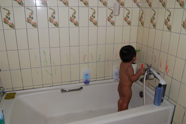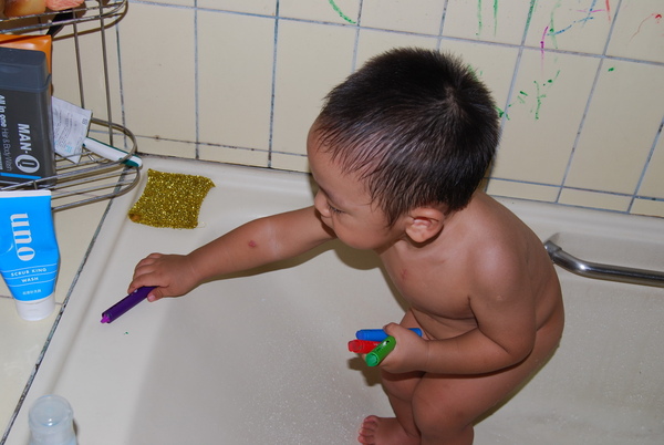 於是就去買了有顏色的蠟筆給他玩 自己可以畫上半小時呢
