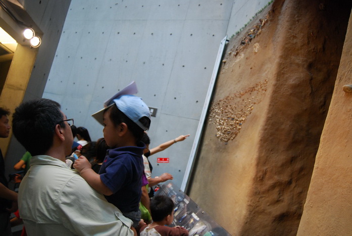 這牆上有當初在挖掘時 地底下發現每個層面的化石