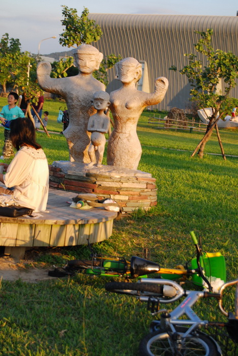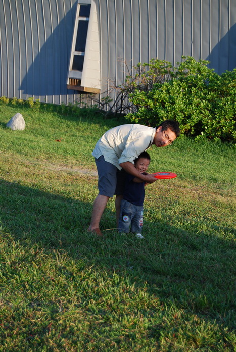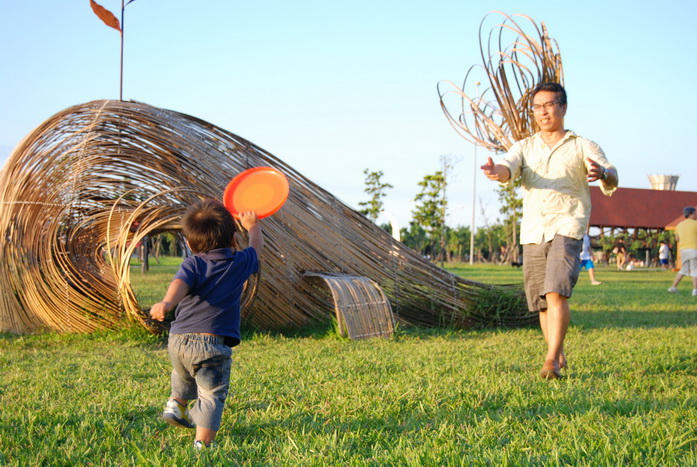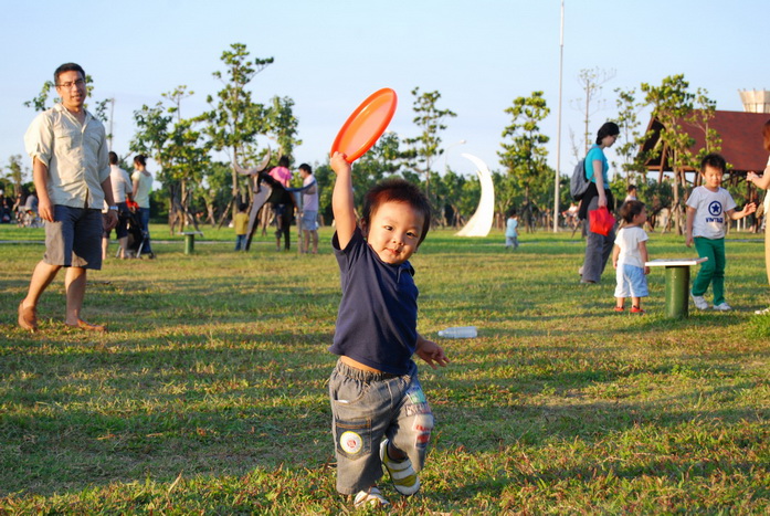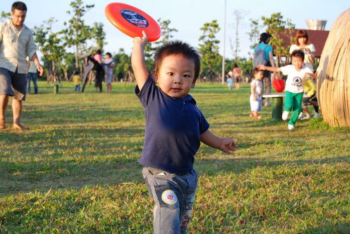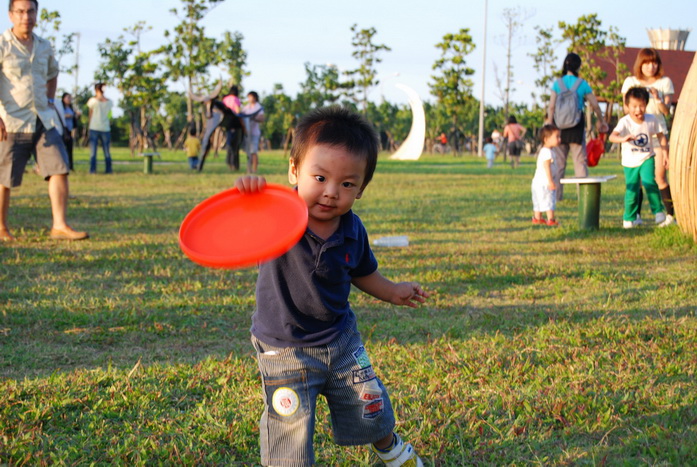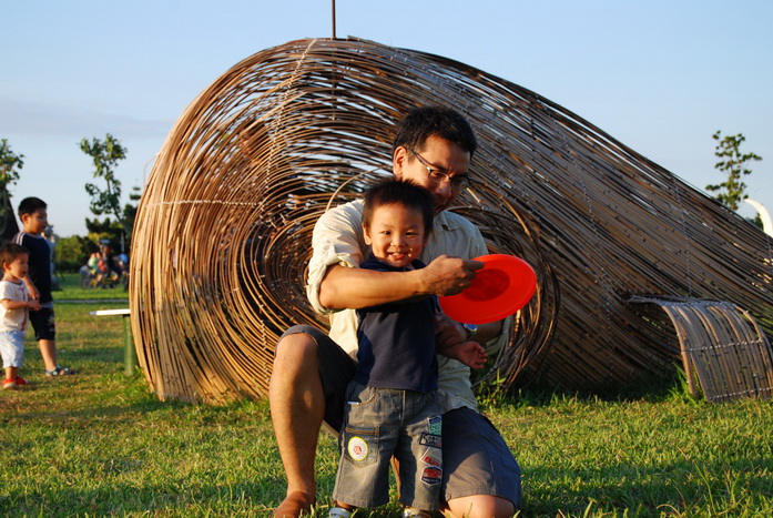 繞完河岸邊一圈 回到十三行外面的草地上 玩飛盤去囉