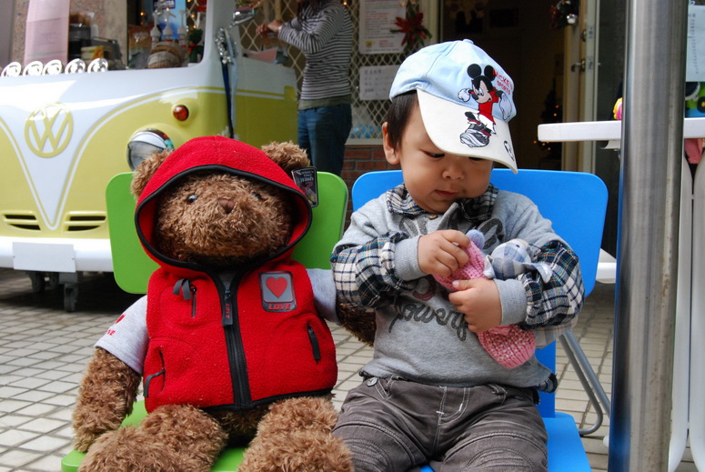 門口可愛的迎賓大熊 吸引了不少小朋友有