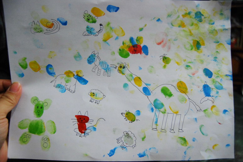 就這樣來來回回的又印又擦中 我們一起完成了第一幅指印畫