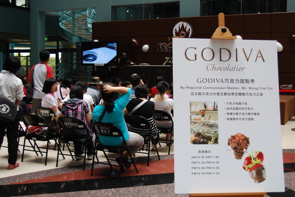 一進門的一樓大廳有GODIVA師傅的巧克力甜點秀