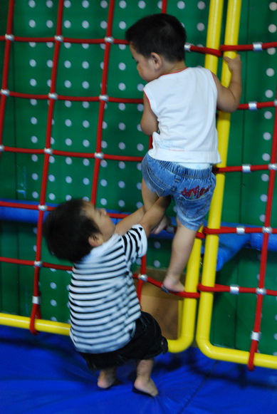 好動的祐祐在靜態遊戲區完全呆不住 整個下午都在體能訓練