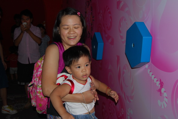 媽媽們搶著想要拍照 可是小朋友們已經被牆邊的光束給吸引走了