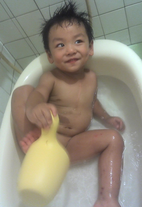 大佟一歲以後就已經不用澡盆洗澡了