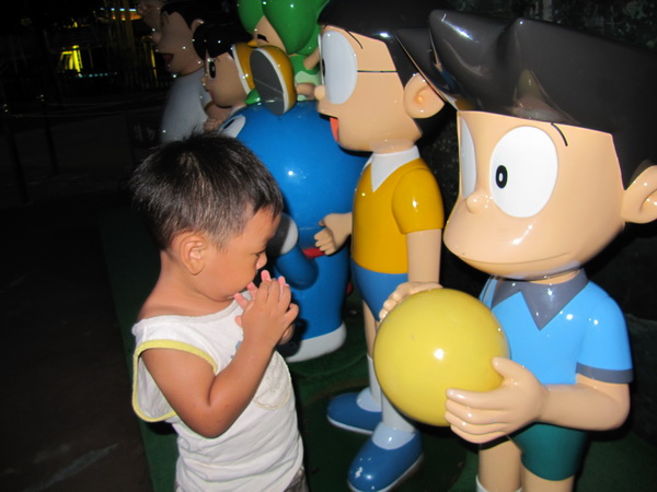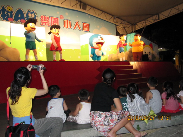 七點半 多拉A夢的舞台劇上演 終於~ (因為整個白天都是小丑)