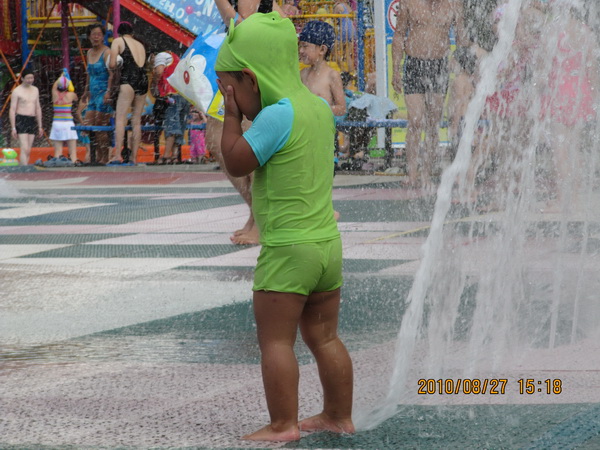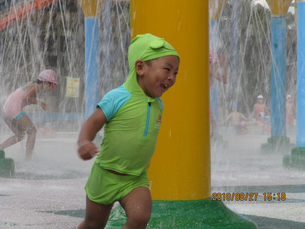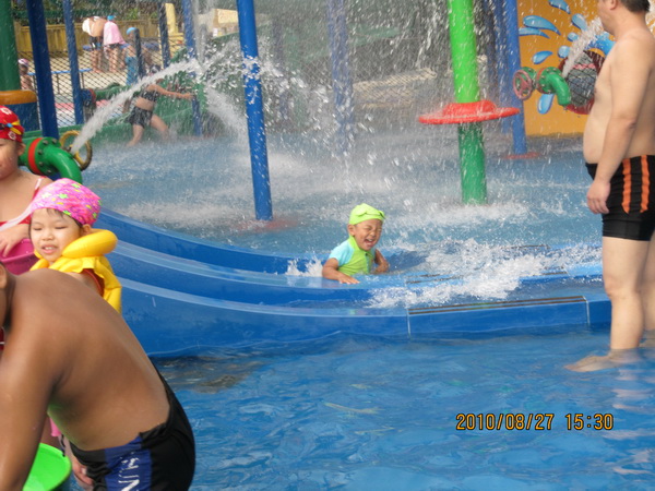 所以 都一直重複的玩著同一個不用經過噴水柱的那個溜滑梯