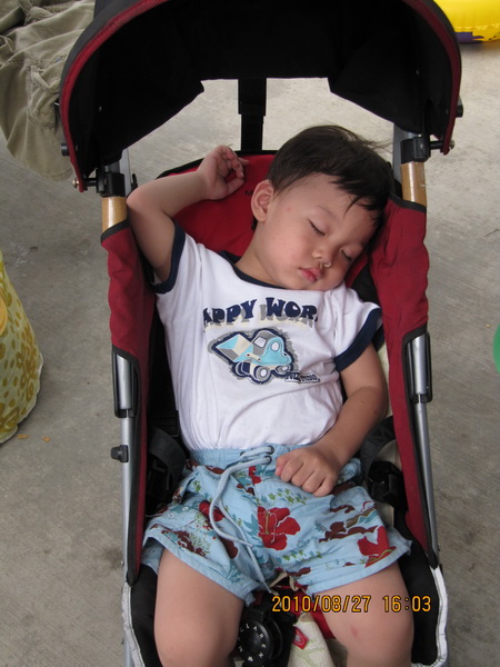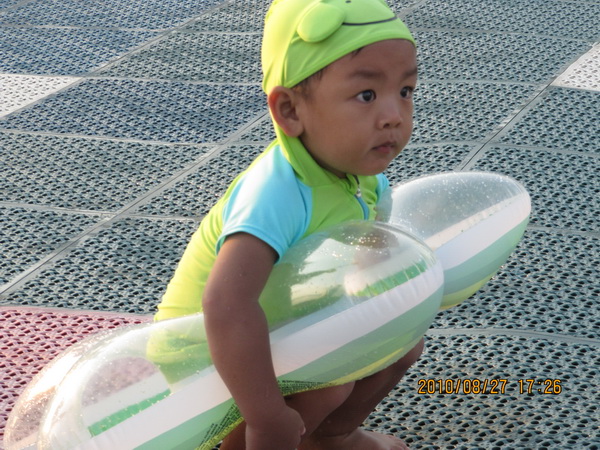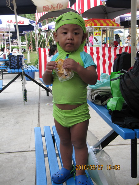 疑? QQ怎麼沒換衣服呢? 原來QQ弟還沒開始玩水 就已經睡著了阿