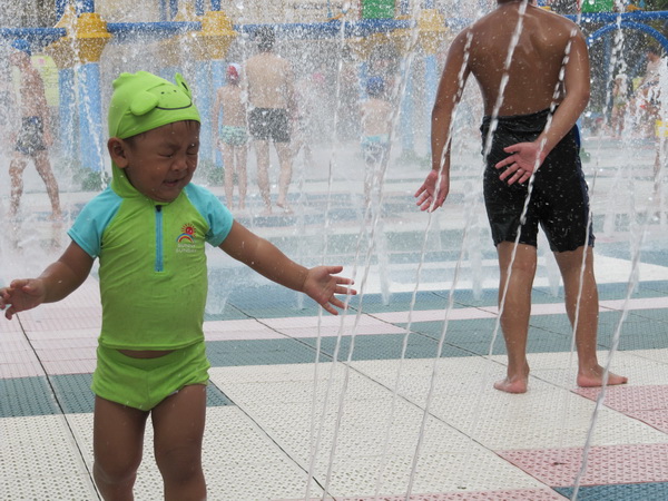佟媽我要邊陪大佟玩 邊拍照 邊注意這些隨時會亂噴 還會從天而降的大水