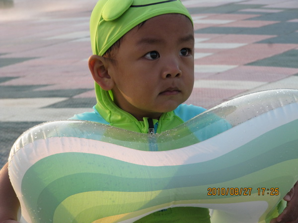 今天七點就起床 沒有睡午覺 而且玩了一整天的大佟 居然還不願意給我離開玩水區