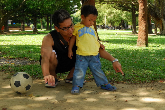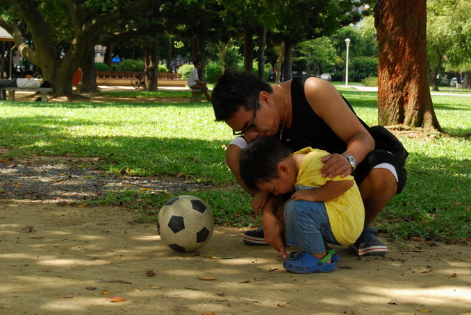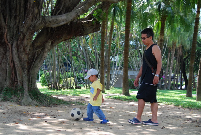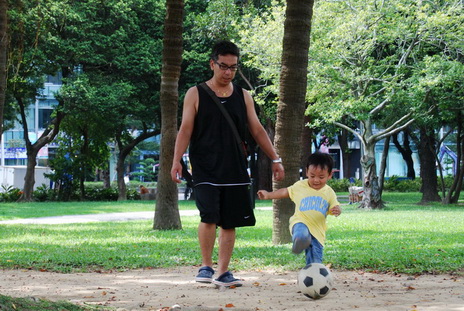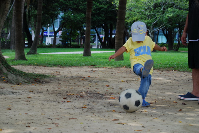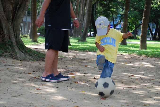 找個有樹蔭涼快的地方 拿出足球來玩囉