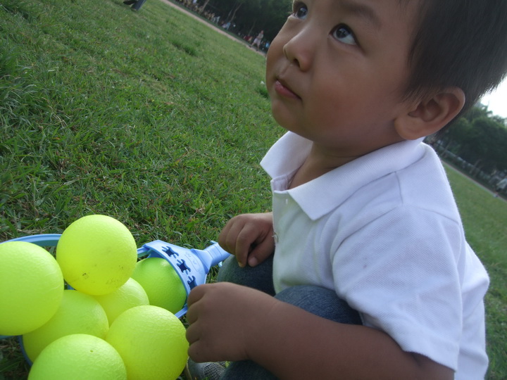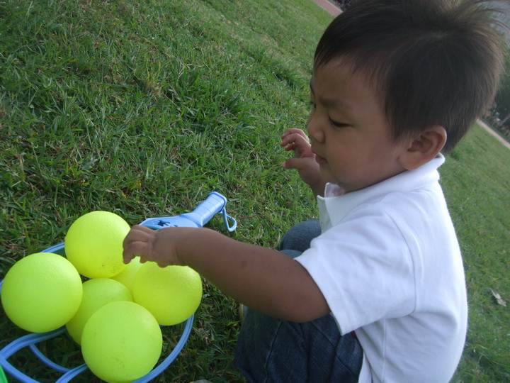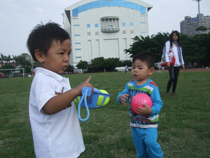 " 不行喔 你手上已經有一顆球了 自己去玩 不可以搶我的喔 知道嗎"