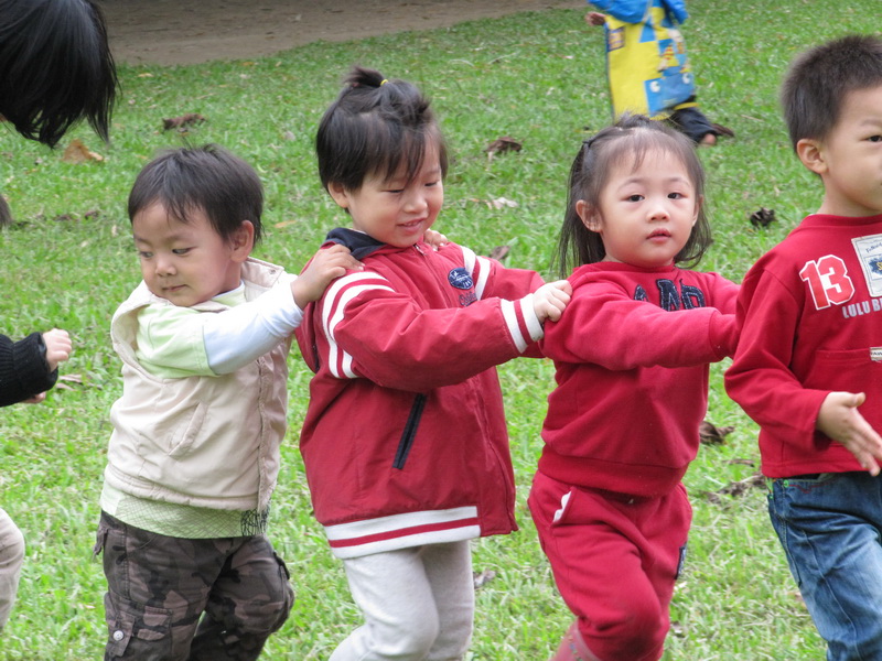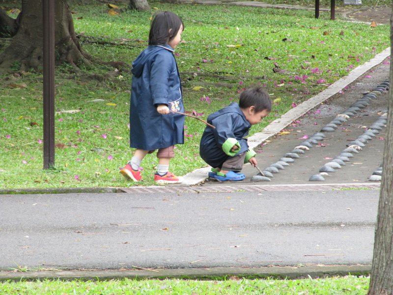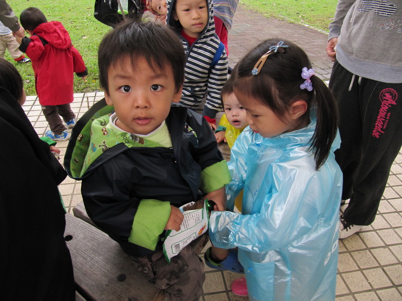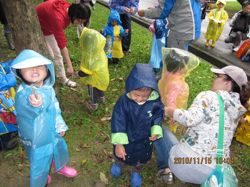 因為雨勢不大 所以小朋友們穿著雨衣也都依然很開心的玩著