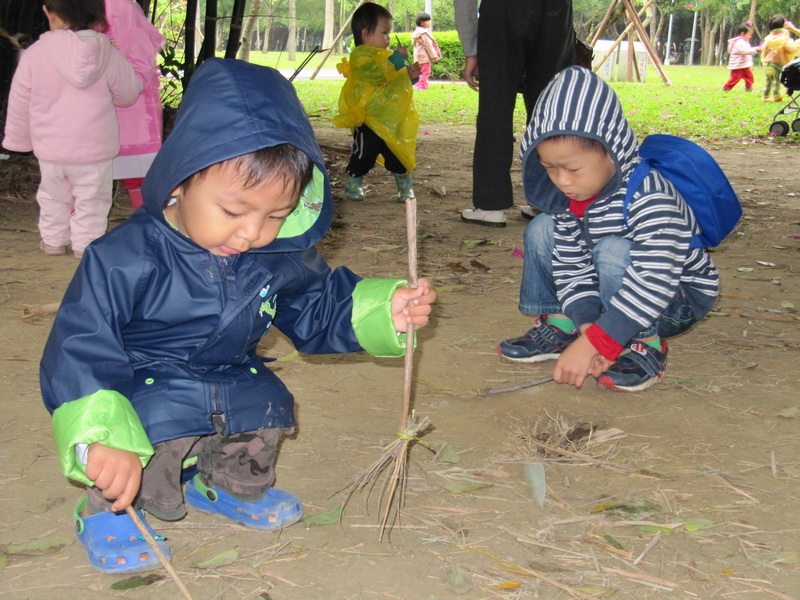 於是綠豆粉圓爸發想了請大家一起找小樹枝來綁小掃把的活動