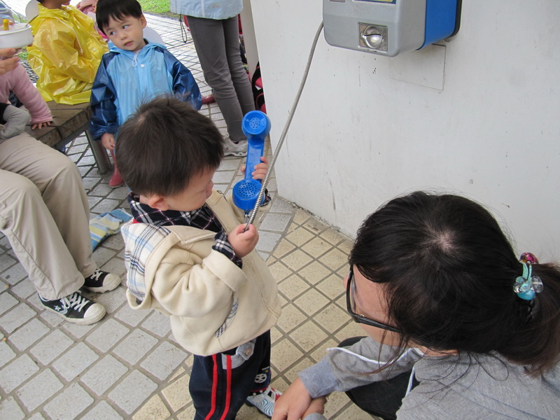 涼亭裡面的公共電話非常受到小朋友的歡迎