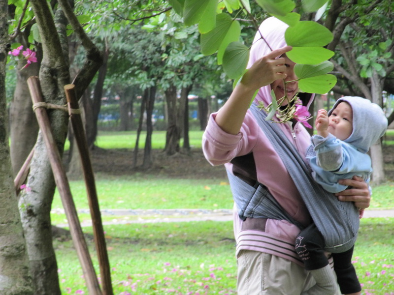 至於還抱在懷中的小小孩 也可以撫摸著剛沾過露水的葉面