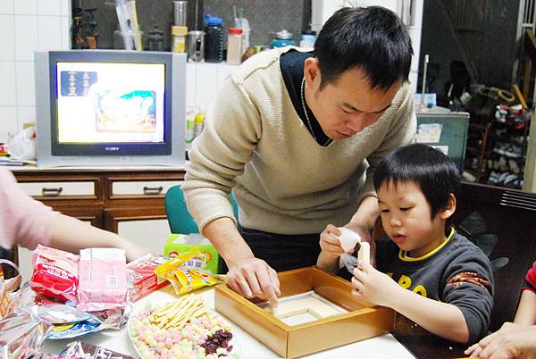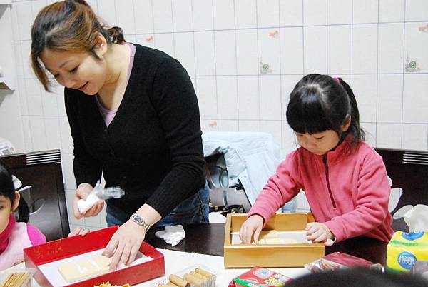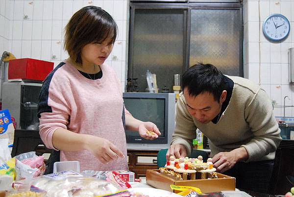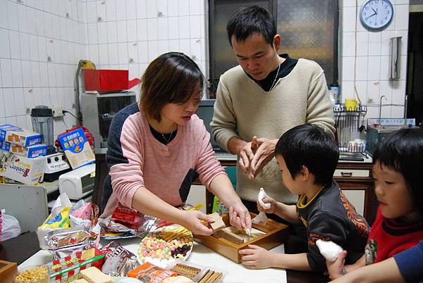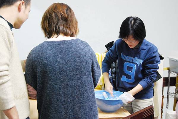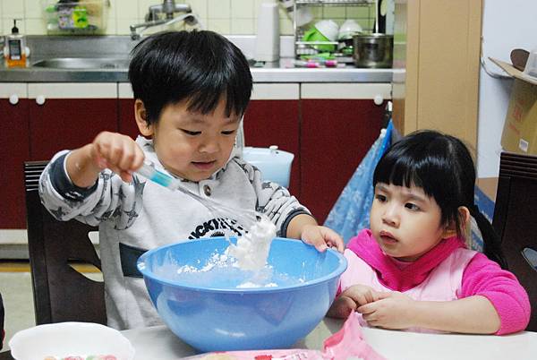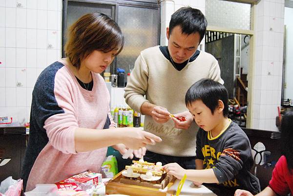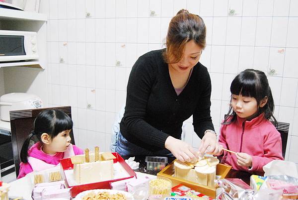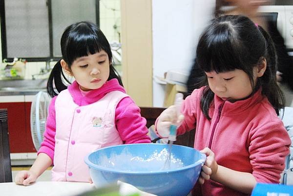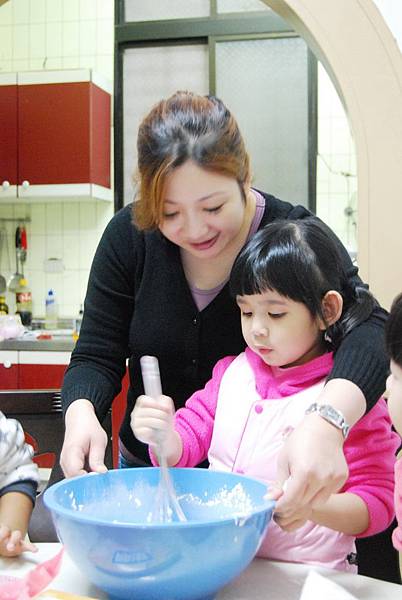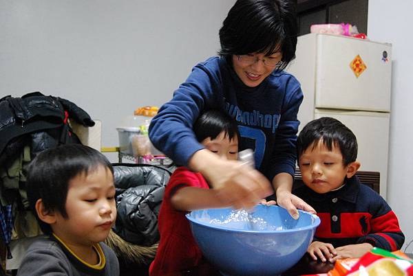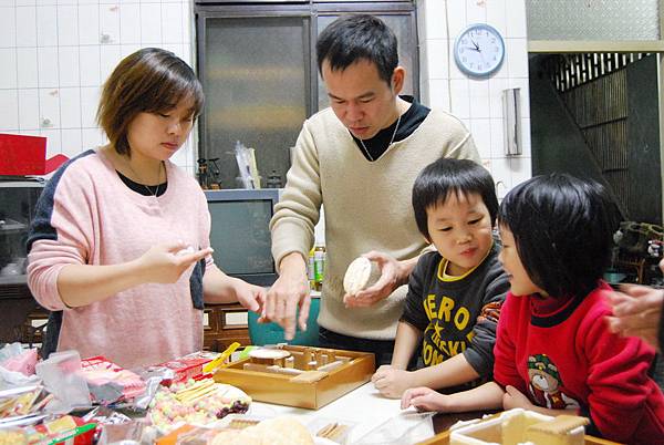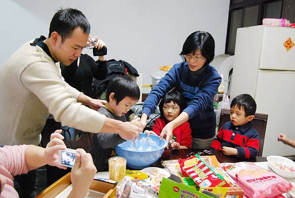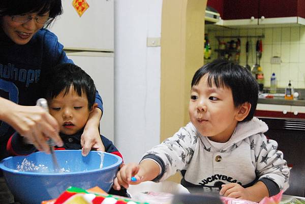 最後由昱任爸爸把糖霜打勻, 怡臻媽媽來分裝糖霜