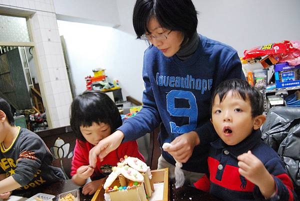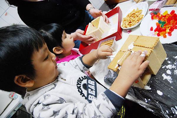 今天我們邀請了幾個大佟的同學來家裡做聖誕薑餅屋