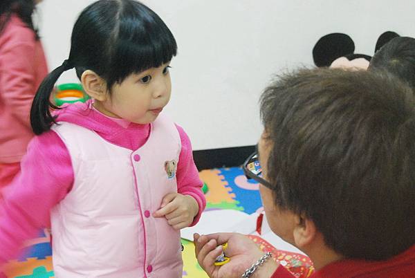 害羞的艾芸~ 她只要禮物~不要跟老公公照相 >_<