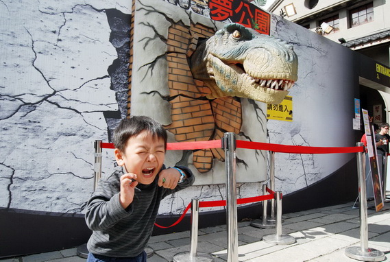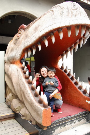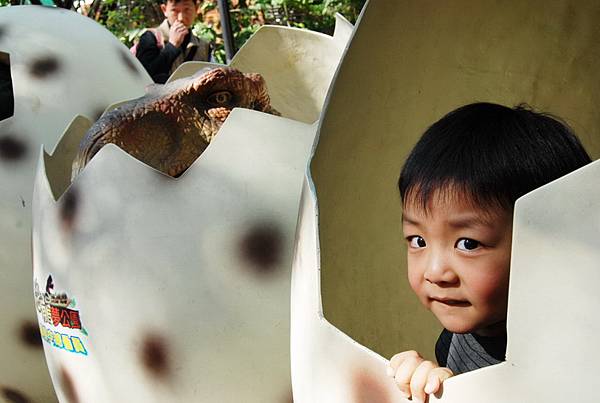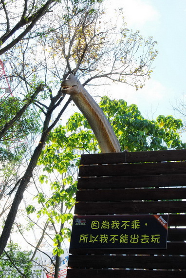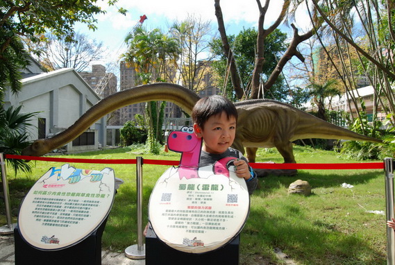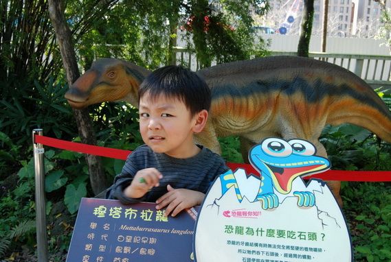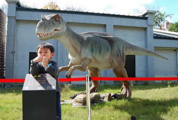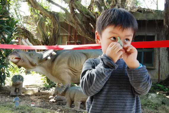 老爸拍不到兒子跟恐龍的合照 只好自己去拍拍恐龍了