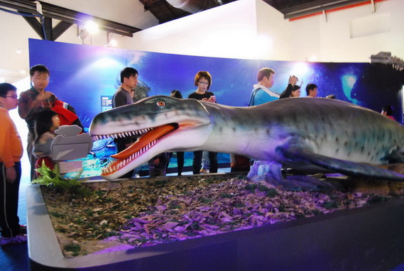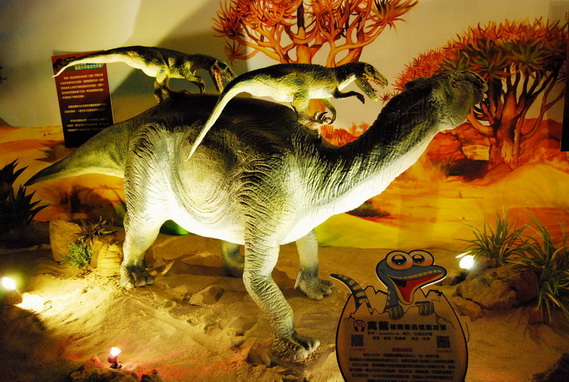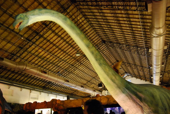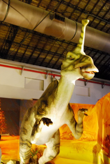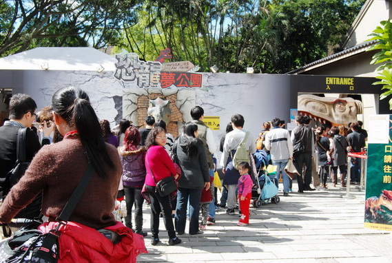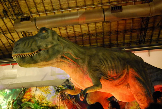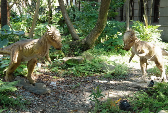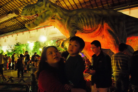 接著看到一大群搖頭晃腦 撕聲吼叫的電動恐龍
