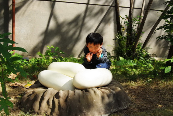 一轉念 我抱起大佟安撫他 慢慢在園區走來走去