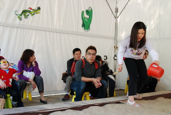 人很多 太陽很大 每個小孩限時玩五分鐘